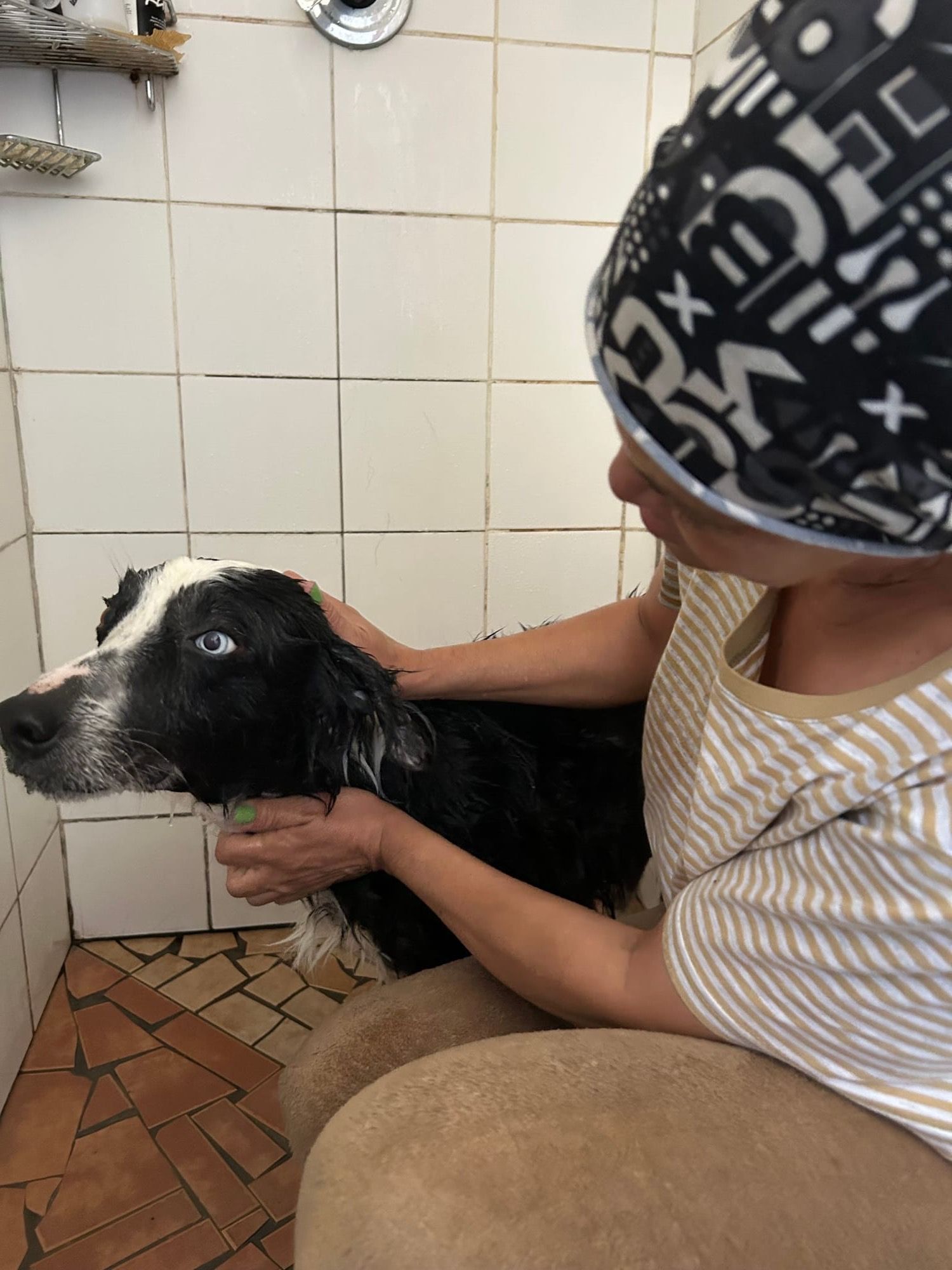 The lady who helped me rescue him fell in love with him, something that happens quickly when you hand-pick parasites from a dog's entire body, and they trust you enough to allow you, and she looked after him for a few days.